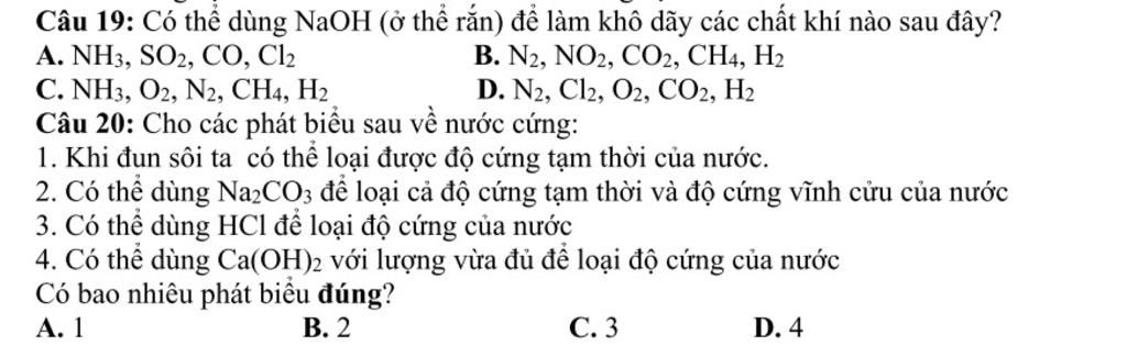 B. Loại. Vì có $CO_2, Cl_2$ tác dụng được với $NaOH$