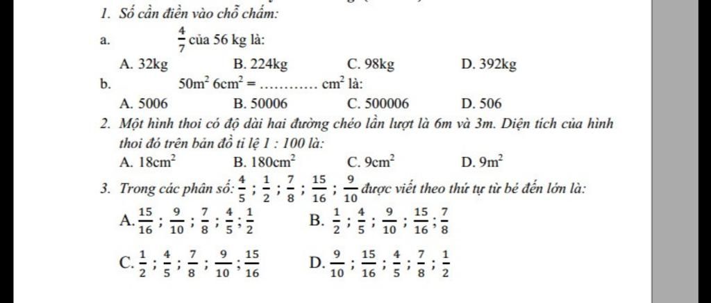 a. $\dfrac{4}{7}$ của $\text{56 kg}$ là: