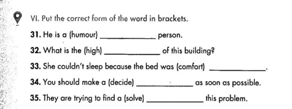 31. humourous (a/ an/ the+ adj+ N(s/es))