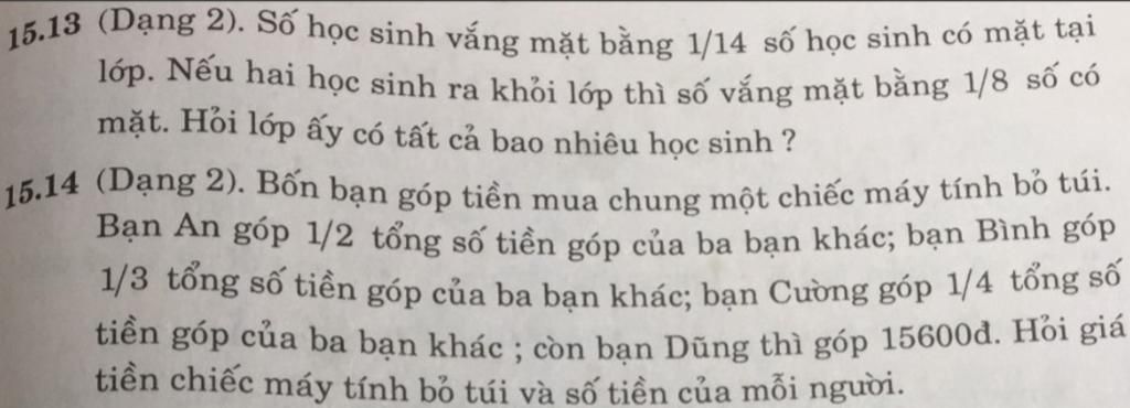bởi Số học sinh vắng mặt bằng `1/14` số học sinh có mặt tại lớp.
