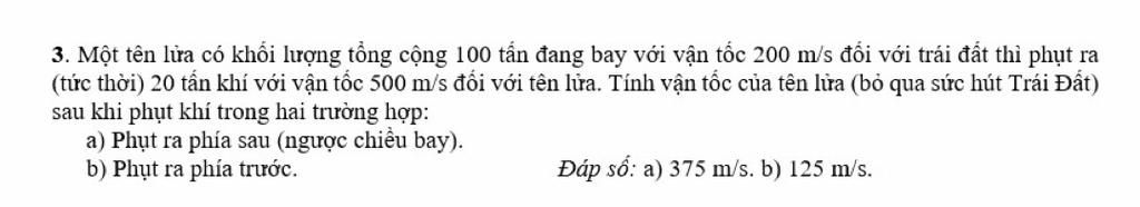 a. Khi phụt khí ra phía sau, Vận tốc của tên lửa là: