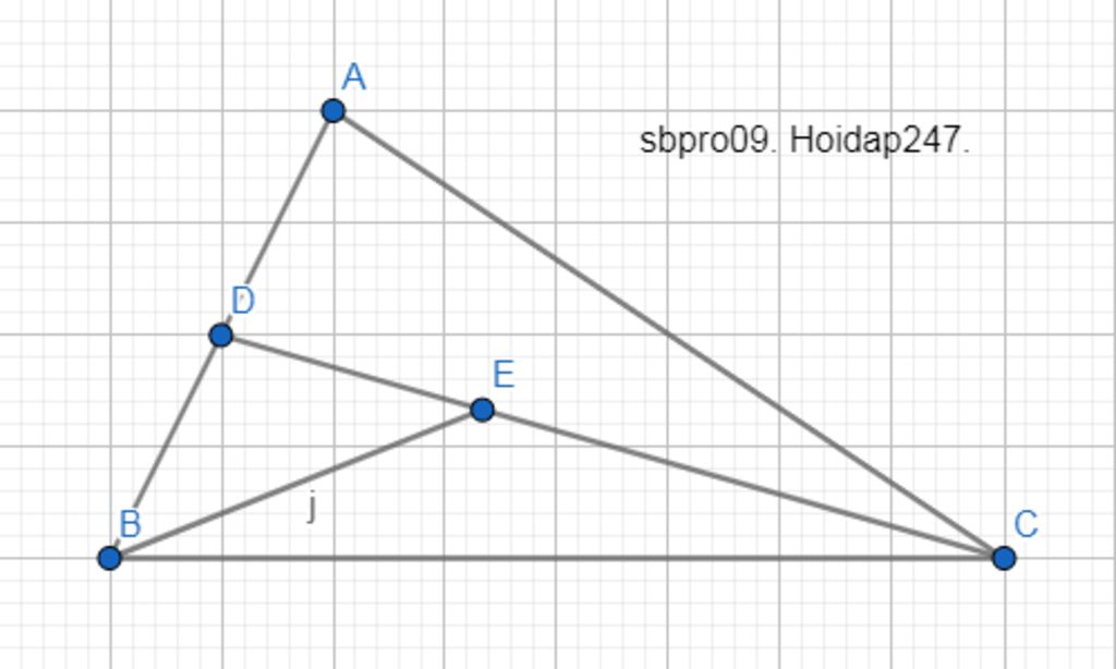 Vì D là trung điểm của AB nên AD=BD=ABx$\dfrac12$. Vì BD=ABx$\dfrac12$ và tam giác ABC và tam giác BDC có chung chiều cao tạ từ C nên diện tích hình tam giác BDC bằng $\dfrac12$ diện tích hình tam giác ABC.