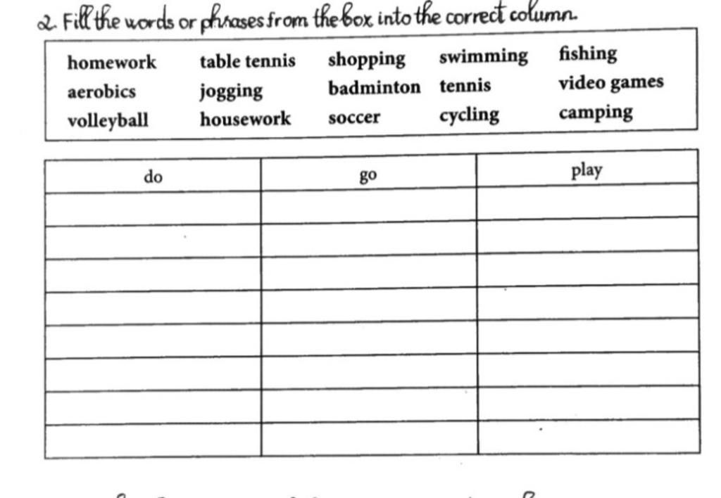 1. do: Homework, aerobics, housework