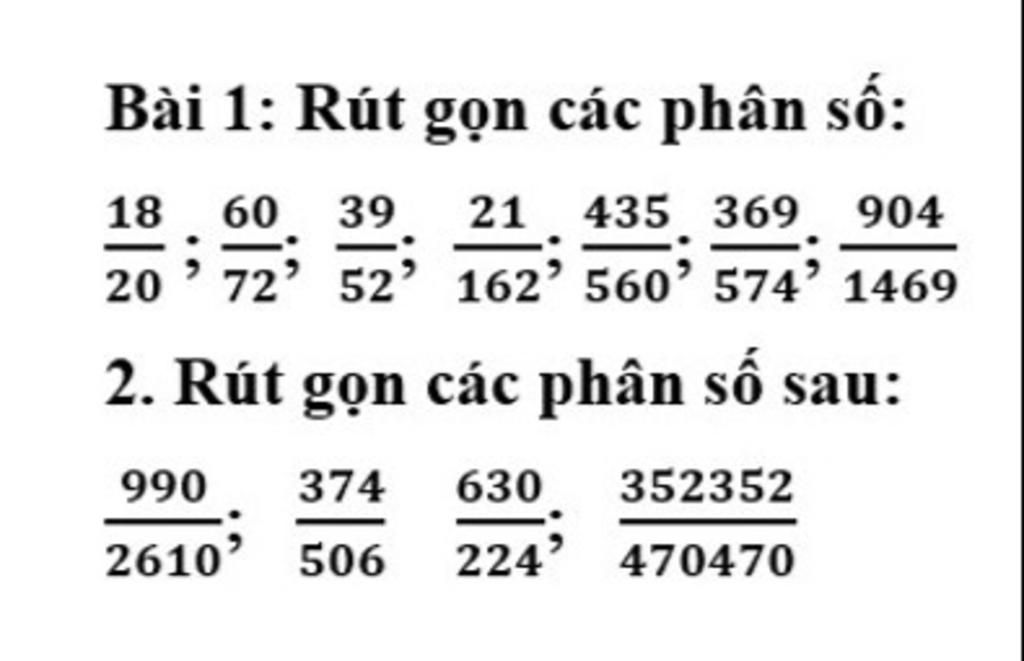 $\frac{18}{20}$ = $\frac{9}{10}$ ; $\frac{60}{72}$ = $\frac{5}{6}$ ; $\frac{39}{52}$ = $\frac{3}{4}$