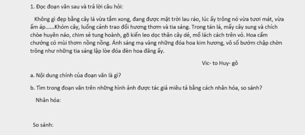 - Nhân hóa : Cây lá vừa tắm xong , đang lau ráo
