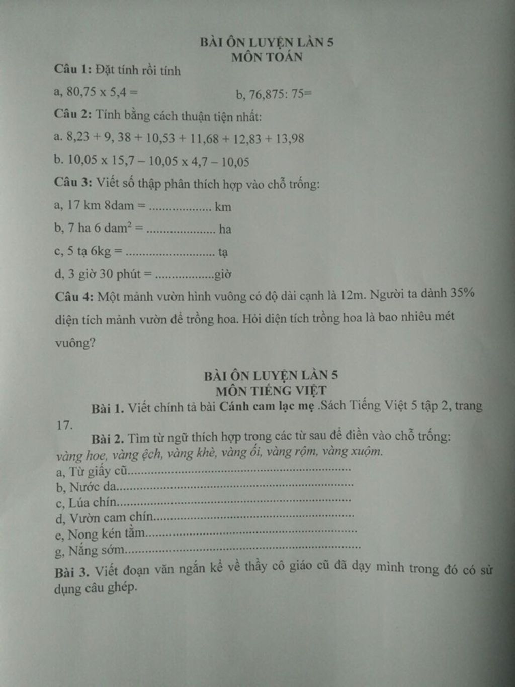 5 tạ 6 kg = 6,05 tạ