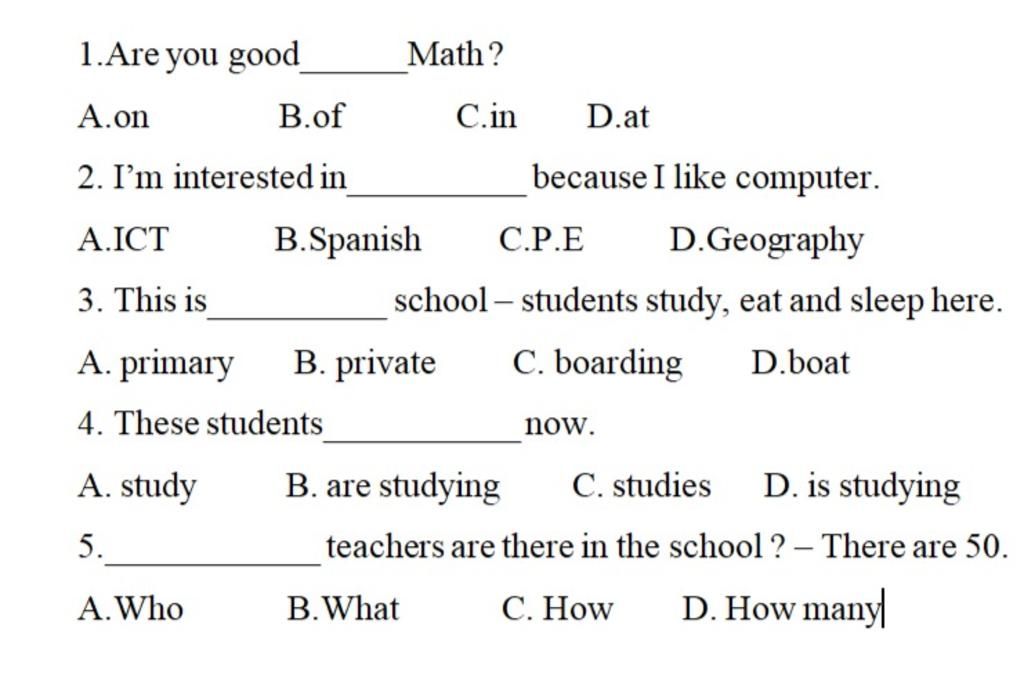 - Dịch: Bạn có giỏi về toán không ?