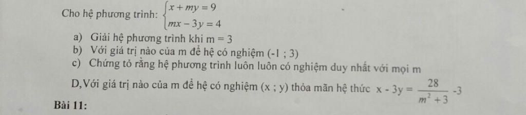 Vậy hệ luôn có nghiệm duy nhất với mọi m