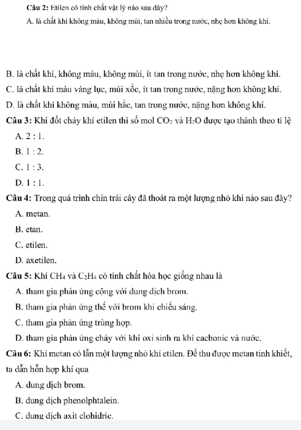 $C_{2}$$H_{4}$ và $CH_{4}$ có đặc điểm chung là khi phản ứng cháy đều sinh ra 2 chất duy nhất là khí oxi và khí cacbon dioxit