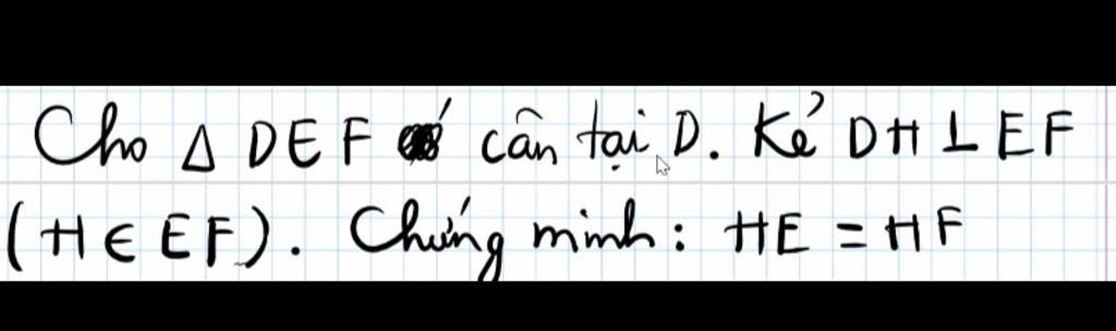 `\hat{DEH}` = `\hat{DFH}` (hai góc đáy của tam giác cân DEF)