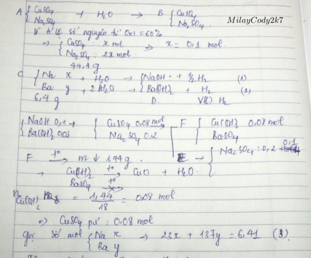 Hỗn hợp A gồm CuSO4 và Na2SO4 trong đó số nguyên tử oxi chiếm 60% tổng số nguyên tử có