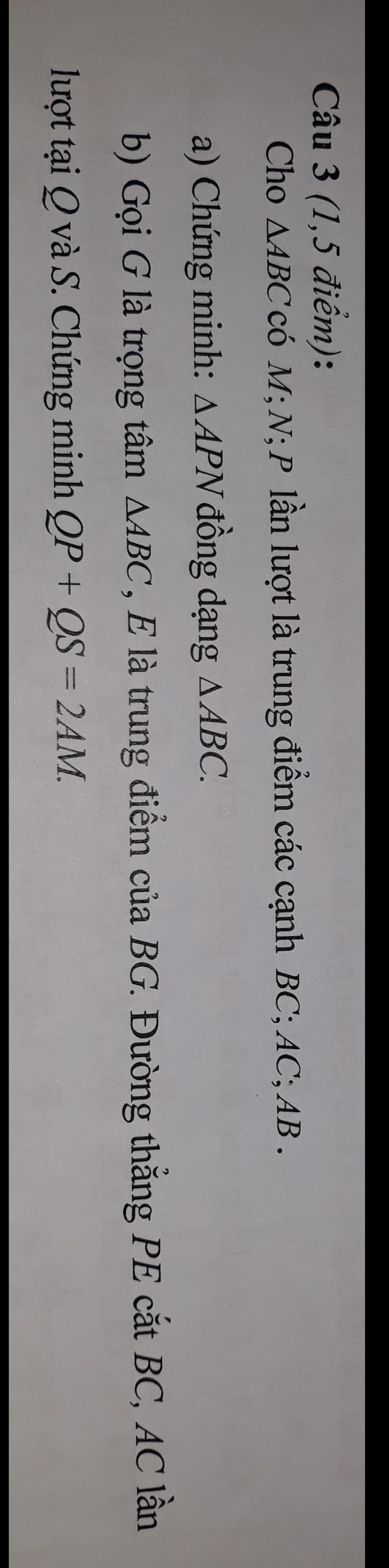 b) Gọi G là trọng tâm AABC, E là trung điểm của BG. Đường thắng PE cắt BC, AC lần