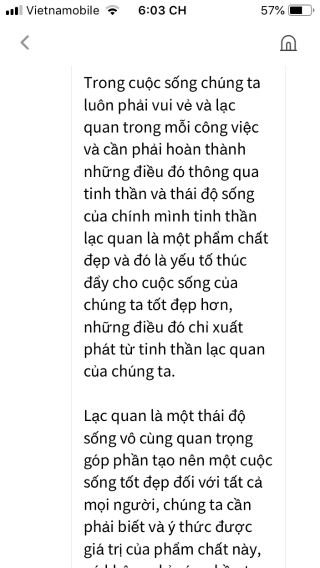 Suy ngẫm về tinh thần lạc quan trong cuộc sống, William James đã rất tâm đắc khi bộc bạch: “Sự bi quan dẫn tới yếu đuối, lạc quan dẫn tới sức mạnh”. Thật vậy, để tới được thành công, mỗi người chúng ta phải trải qua rất nhiều những thử thách, những sai lầm, thất bại và tinh thần lạc quan chính là liều thuốc tốt nhất giúp chúng ta có động lực vượt qua những khó khăn ấy. “Lạc quan” là một trạng thái cảm xúc tích cực, luôn có niềm tin và hướng về những điều tốt đẹp dù cuộc sống gặp nhiều khó khăn, phiền muộn, gian nan. Cuộc sống có muôn vàn khó khăn, thử thách, sống lạc quan giúp con người có cái nhìn sáng suốt, trí tuệ minh mẫn, hành động đúng đắn để giải quyết mọi việc một cách tốt đẹp, giúp con người trở nên can đảm, tự tin, sống có ích hơn và luôn học hỏi được những kinh nghiệm quý giá trên hành trình dài rộng của cuộc đời. Hơn nữa, sống lạc quan giúp mỗi người nhận ra mặt tích cực của mọi vấn đề, nhận ra những cơ hội mà người sống bi quan không thể nhận ra, từ đó gặt hái được những thành công trong cuộc sống. Người sống lạc quan là biểu hiện của thái độ sống đẹp, được mọi người yêu quý, trân trọng và tin tưởng. Tinh thần lạc quan trong gian khó, sự cần cù học hỏi đã đưa Lương Việt Quốc thoát ra khỏi số phận của cậu bé nhặt rác trên dòng kênh Nhiêu Lộc – Thị Nghè ngày nào trở thành một CEO nổi tiếng, là người đầu tiên sản xuất máy bay không người lái ở Việt Nam. Tuy nhiên, cuộc sống vẫn còn tồn tại nhiều người sống bi quan, gặp khó khăn là buông xuôi, chán nản, song cũng có nhiều người sống lạc quan bằng cách nhìn cuộc đời bằng lăng kính màu hồng, thậm chí mù quáng trước những vấn đề đặt ra trong cuộc sống, như thế họ sẽ chẳng bao giờ chạm tới được thành công. Vì thế, mỗi chúng ta cần nuôi dưỡng phát huy tinh thần lạc quan và luôn tin vào những điều tốt đẹp trong cuộc đời vốn rộng lớn này. Hãy nhớ rằng: “Luôn luôn có ánh sáng đằng sau những đám mây”(Louisa May Alcott)