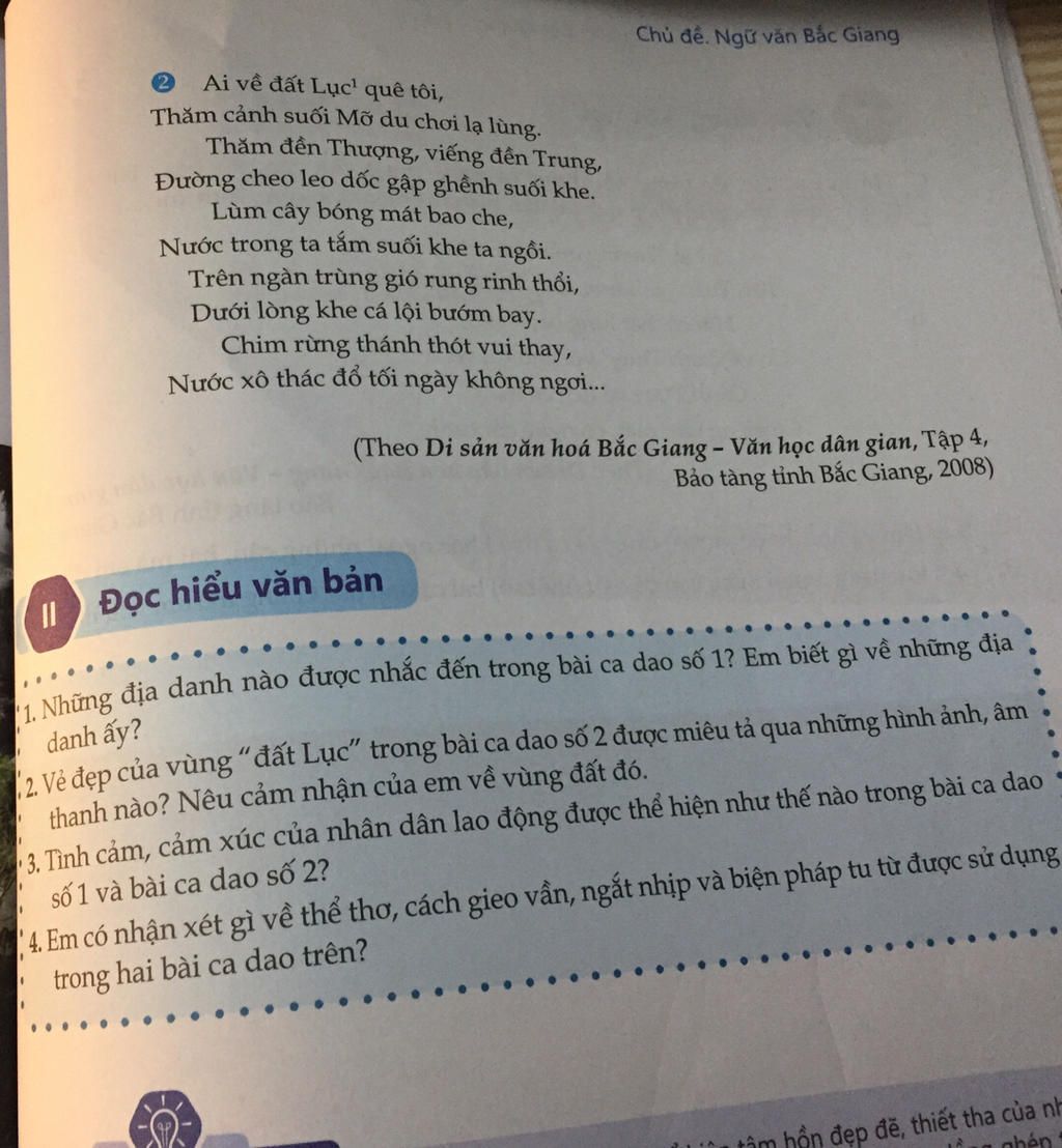 => Cảm nhận của em: Miêu tả vẻ đẹp Lục Ngạn-Bắc Giang là một địa danh vô cùng đẹp, với những danh lam thắng cảnh đa dạng. Qua đó thể hiện niềm yêu quê hương, thiên nhiên, đất nước.