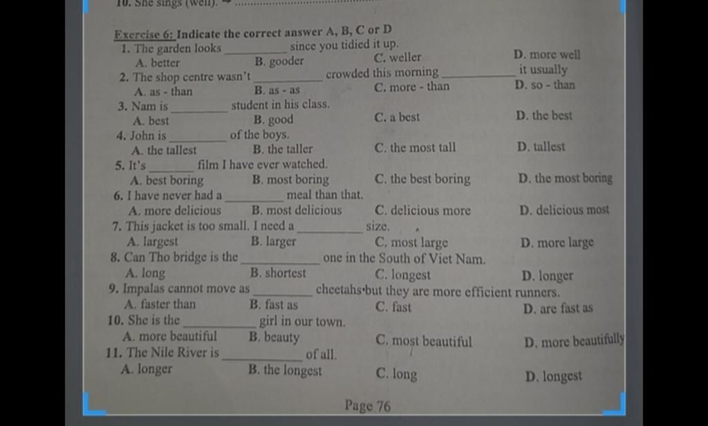 `=>` Đáp án : `C`, most beautiful