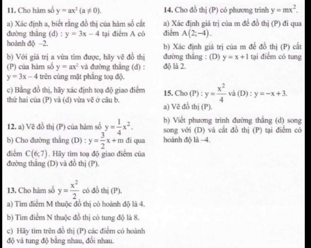 Bài 14: a) A(2; -4) thuộc (P) y = mx² <=> -4 = m2² <=> m = -1