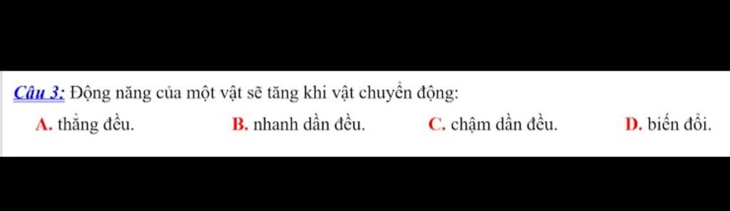 Động năng của vật tăng khi vận tốc của vật tăng, khi đó vật chuyển động nhanh dần đều