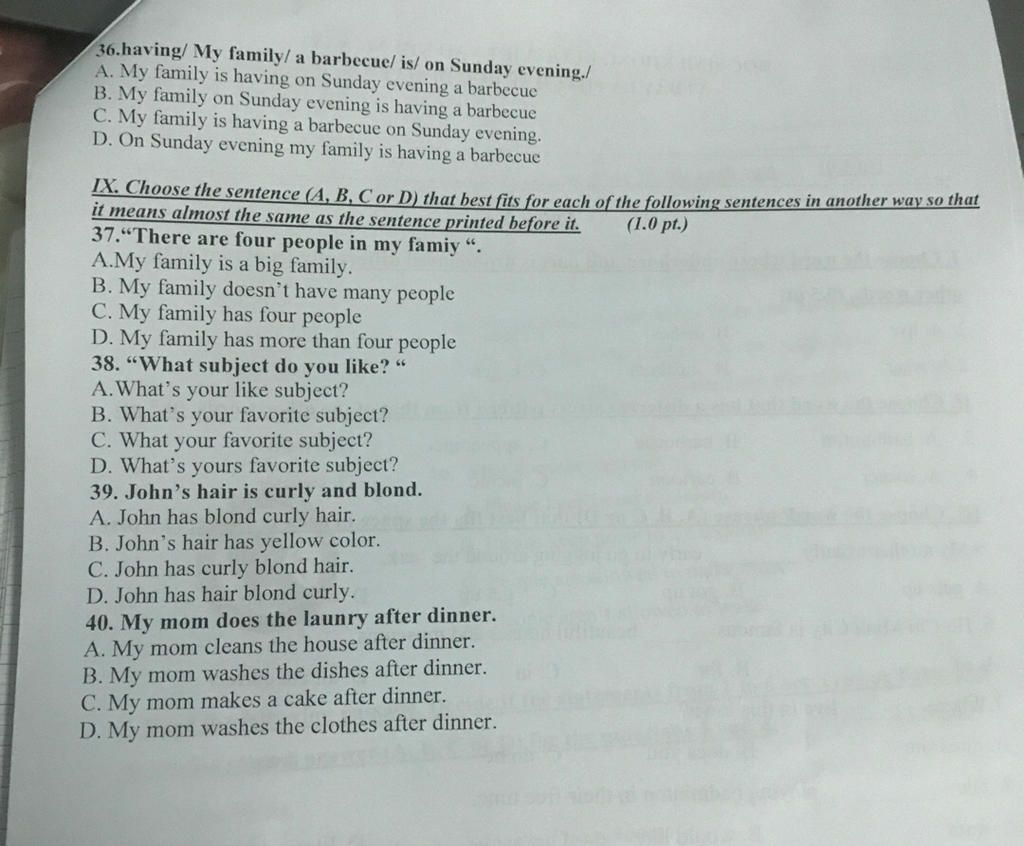 `38.` `B` What's your favorite subject?