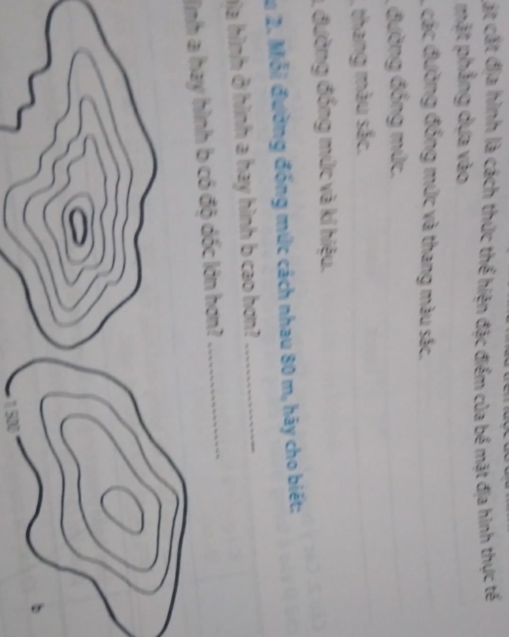 2. Mỗi đường đong mức cách nhau 80 m, hãy cho biet: