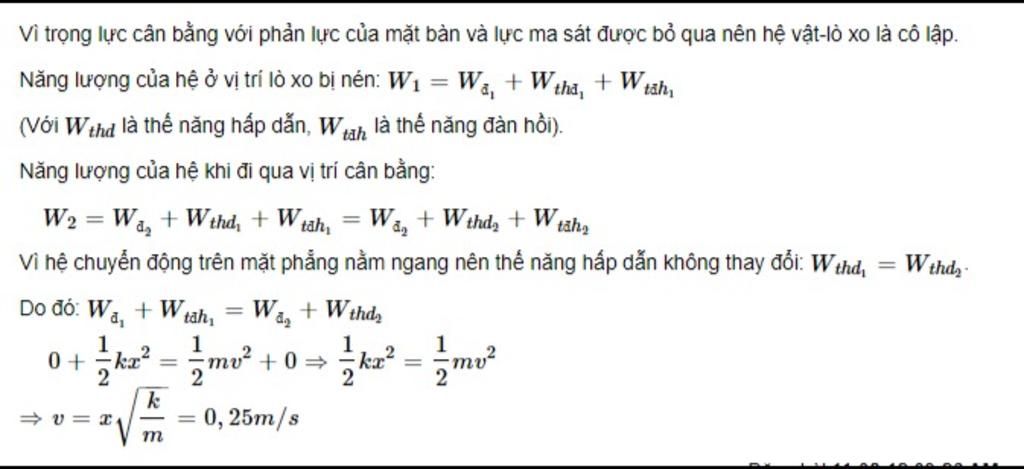 Do lò xo đàn hồi có thể trở lại vị trí cân bằng khi ta buông tay ra, nên khi đó $\Delta l=0$ và $v=0$
