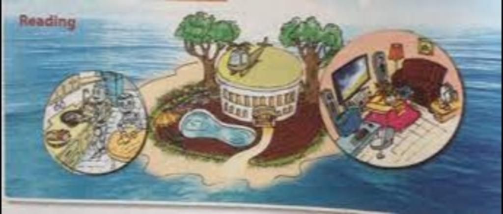 Tạm dịch : Tôi nhìn thấy một chiếc máy bay trên nóc nhà và thấy hồ bơi trước cửa nhà và có những hàng cây xung quanh .