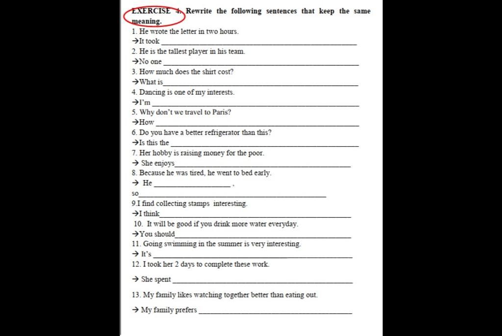 EXERCISE Rewrite the following sentences that keep the same