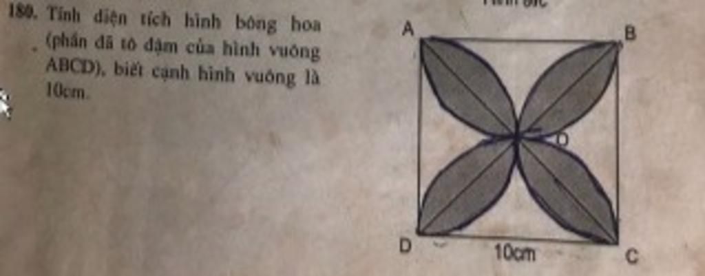 Diện tích hình bông hoa (phần đã tô đậm) là :