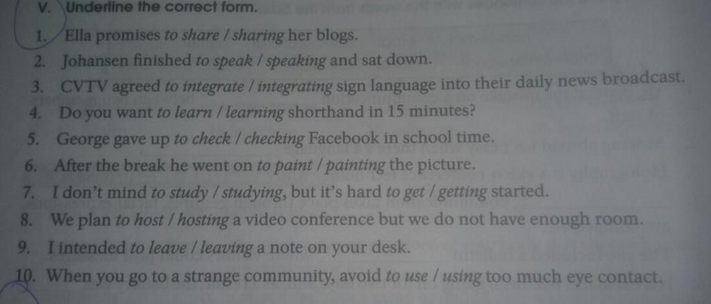 7. I don’t mind to study / studying, but it’s hard to get /getting started.