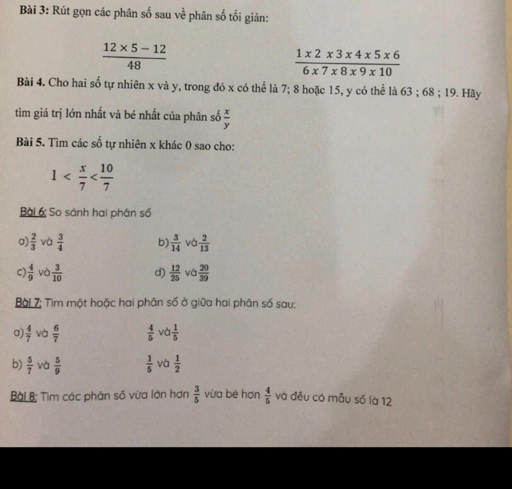 12 *5 -12=12*4/48=1/1=1 1×2×3×4×5×6/6×7×8×9×10=1×2×3×4×5/7×8×9×10=1×2×3×4×5/1×7×4×2×3×3×5×2=1/1×7×2×3×2=1/84 bài 4 15/19 bài 5 8 hặc 9 bài 6 bài 7 5/6 2/5 , 3/5 36/45 1/3 ,1/4 bài 8 9/12