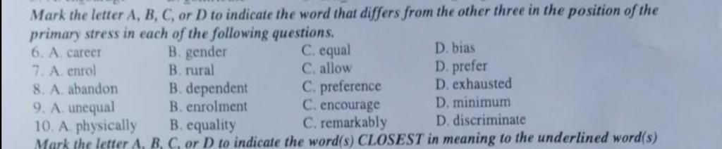 câu D nhấn âm 1 còn lại nhấn âm 2