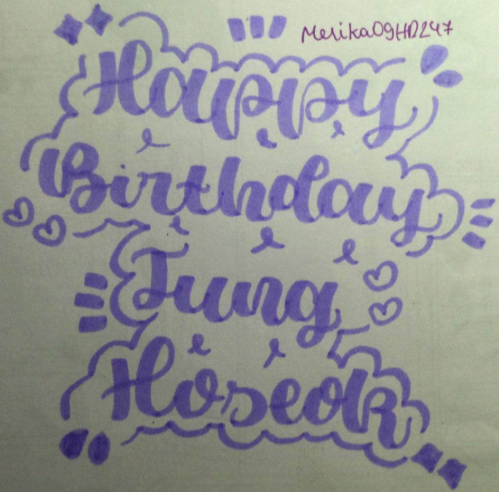 Calli: "Happy birthday jung hoseok." bằng bút tím. ❤️ 18/02/1994 ❤️ 18/02/2022 ❤️