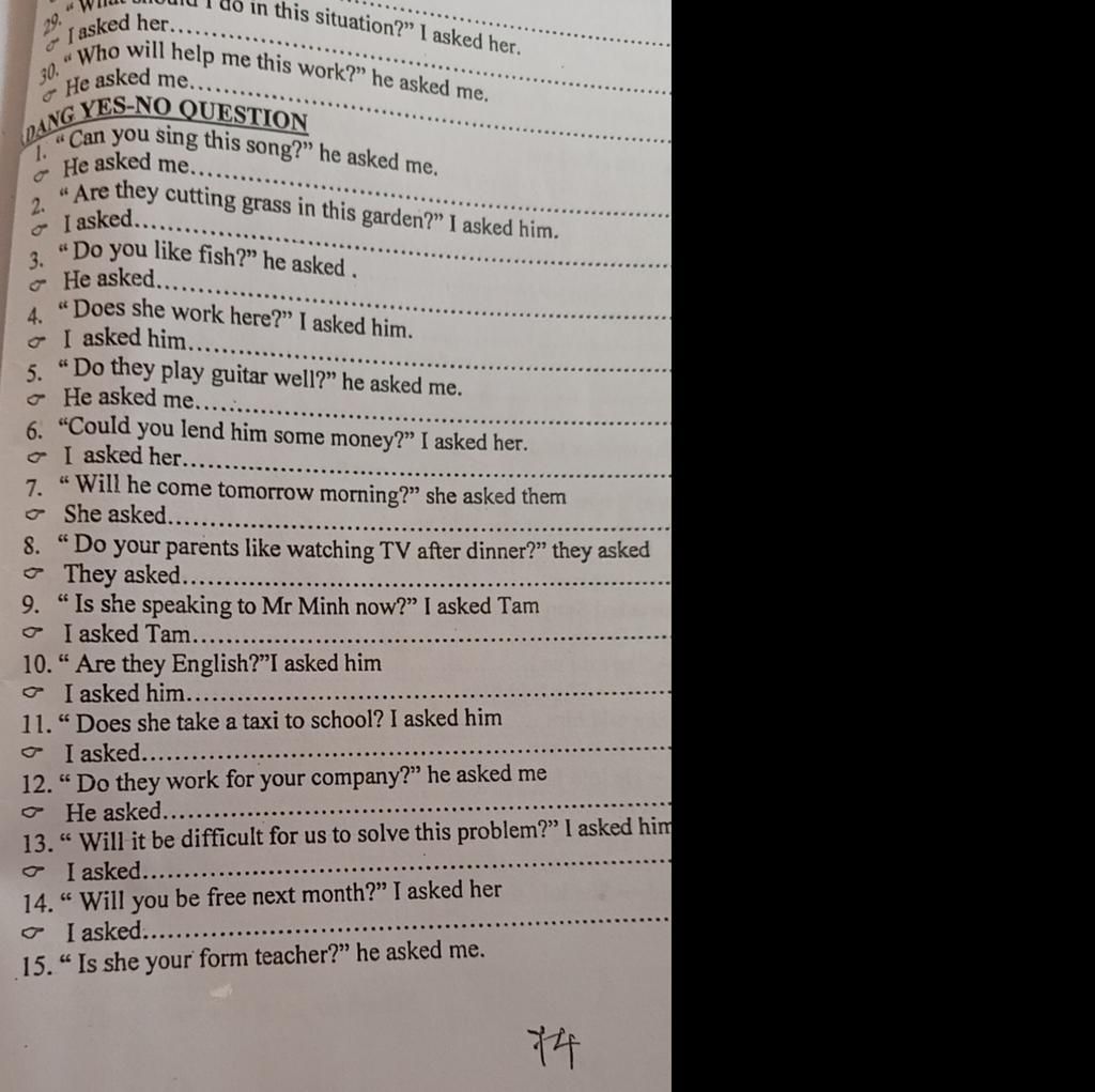 `1.` Anh ấy hỏi tôi có thể hát bài hát đó không.
