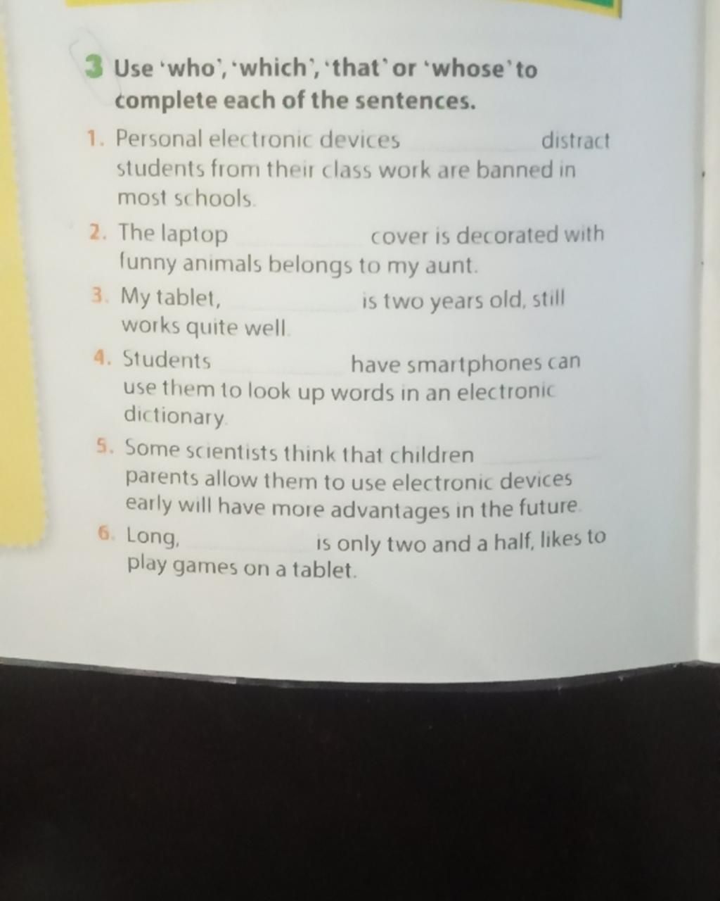 3 Use 'who', 'which', 'that`or 'whose'to