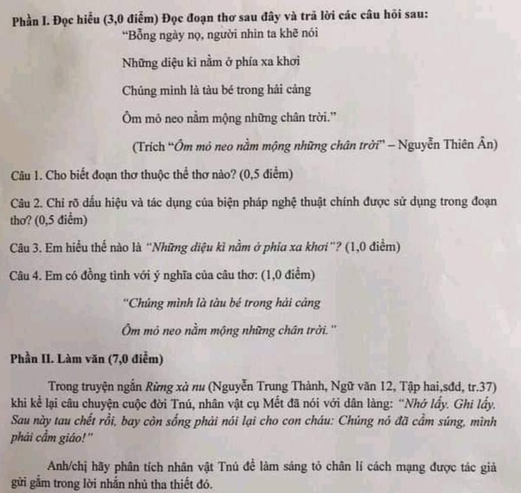 Phần I. Đọc hiểu (3,0 điểm) Đoc đoạn thơ sau đây và trả lời các câu hõi sau: