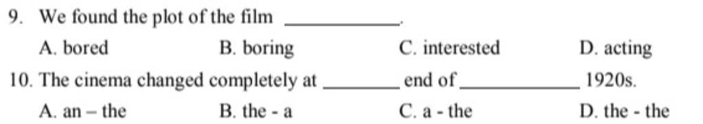 `=>` Không thể chọn bored và interested vì the film là chủ ngữ bị động