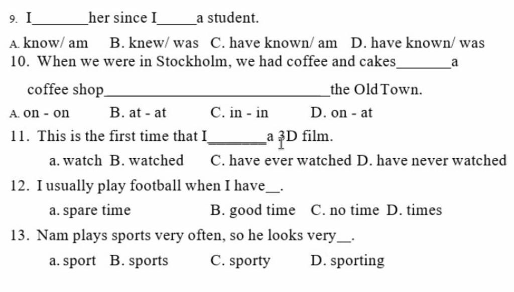 12.A(Tôi thường chơi bóng đá khi có thời gian rảnh)