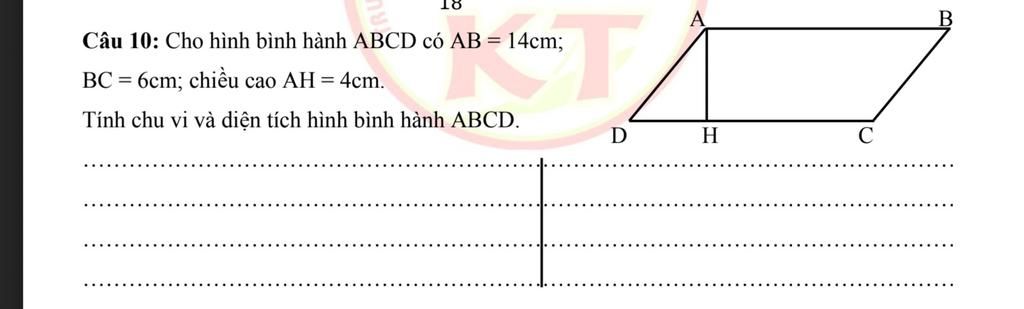 `\text{Đáp số :}` `\text{Chu vi :}` `40` `cm`