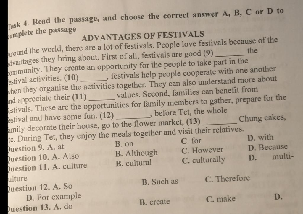 12. D for example ~ ví dụ