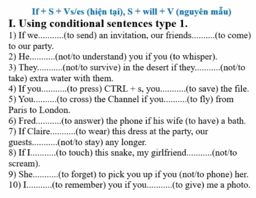 If +S+Vs/es (hiện tại), S + will+ V (nguyên mẫu)
