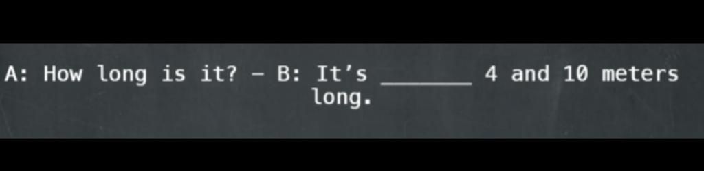 Đáp án A: How long is it? - B: It's about 4 and 10 meters long.