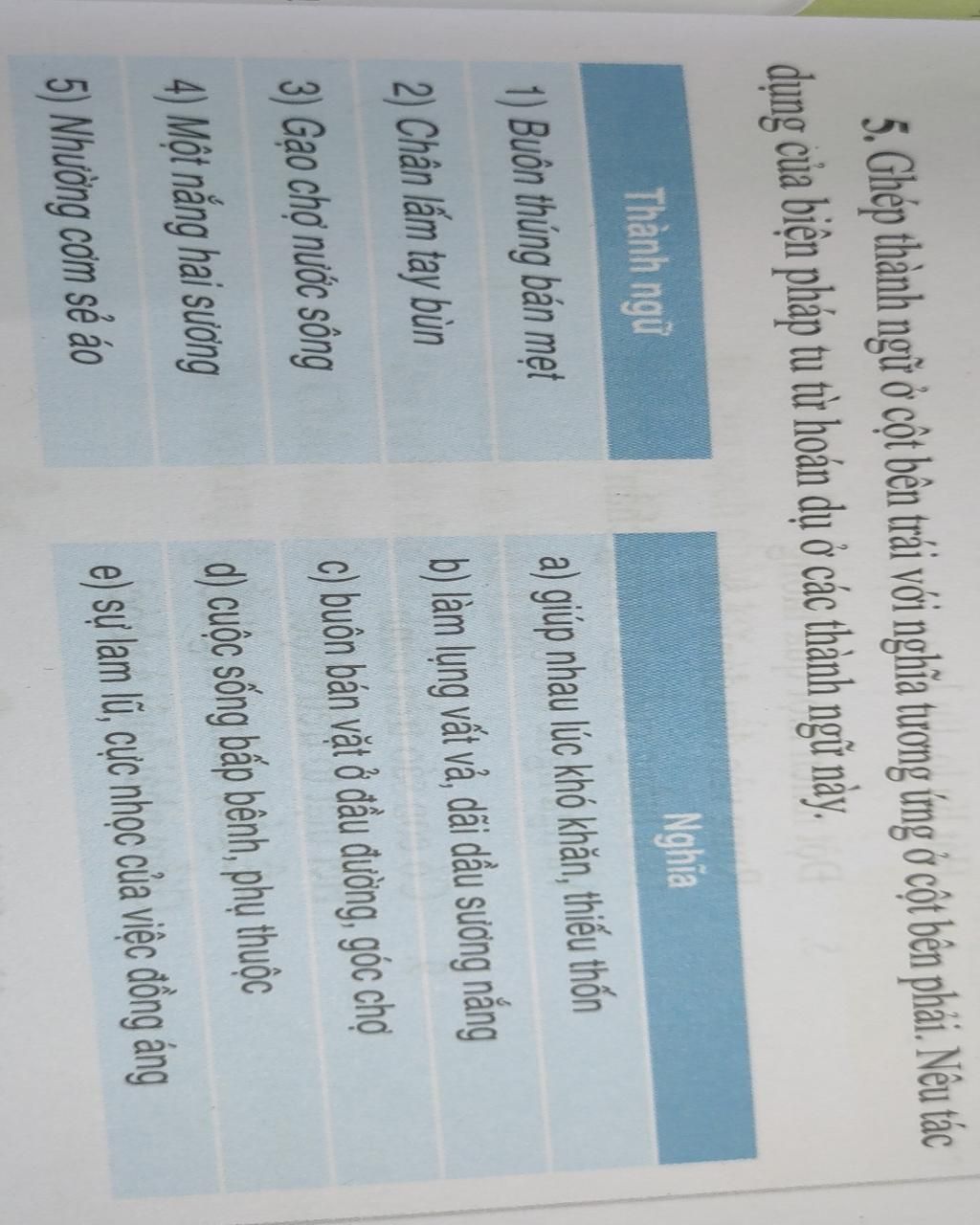 2) Chân lấm tay bùn ⇔ b) làm lụng vất vả, dãi dầu xương nắng