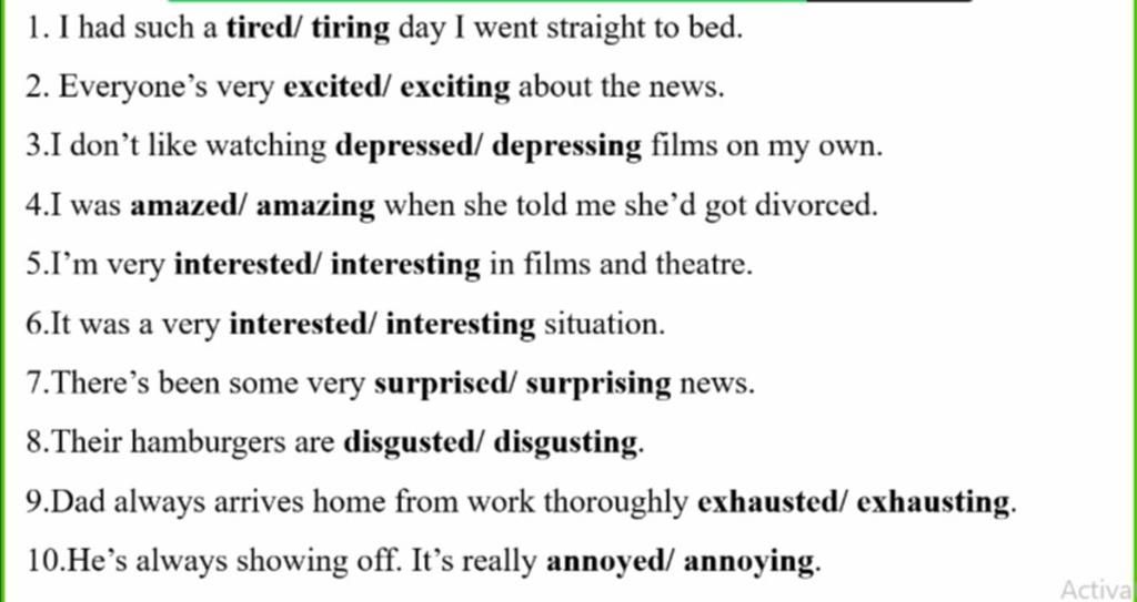 `4)`. I was amazed/ amazing when she toid me she’d got divorced.