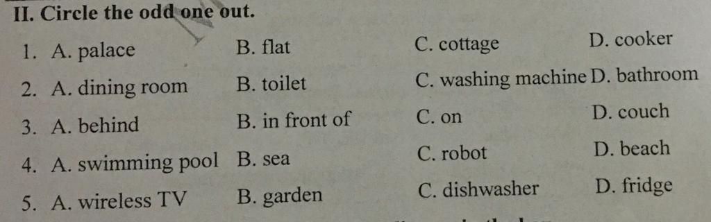Đáp án: khu vườn, còn lại: nội thất trong nhà