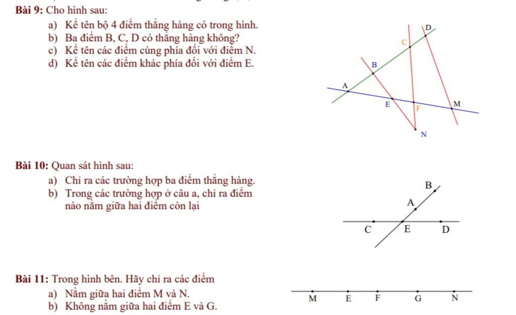 `c)`Các điểm nằm cùng phía đối với điểm`N là :