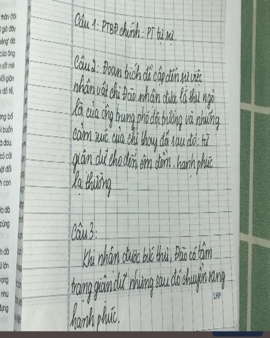 Câu 3. Tâm trạng của Đào khi nhận được bức thư của ông trung đội trưởng là gì?