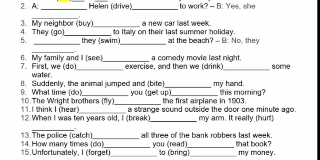 -Nhiều hành động xảy ra liên tiếp trong quá khứ