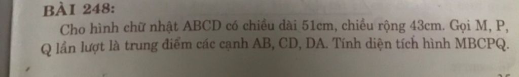 Vì diện tích tam giác AMQ bằng diện tích tam giác QPD nên diện tích hình MBCPQ bằng: