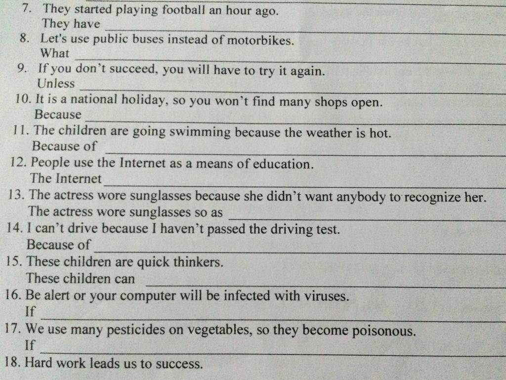 7. They started playing football an hour ago.