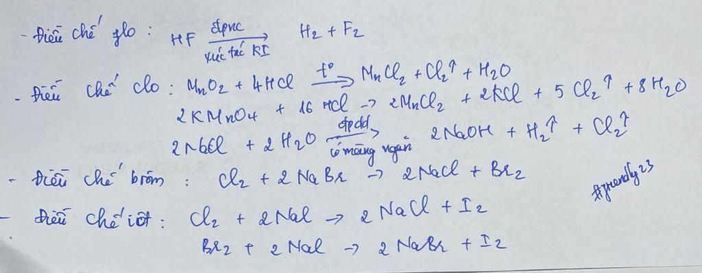 Trình bày nguyên tắc, phương pháp điều chế các halogen. Viết phương trình hoá học