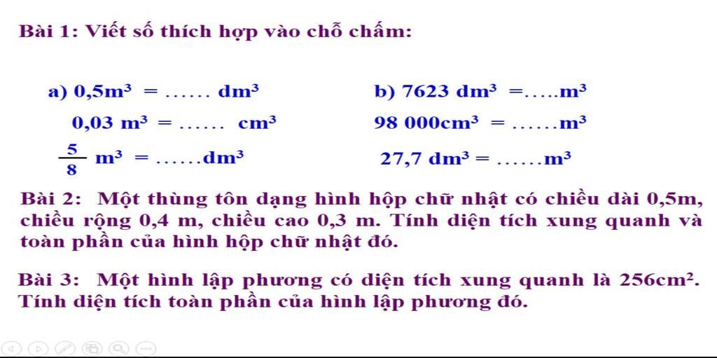 a)0,5m3=500dm3 b)7623dm3=7,623m3